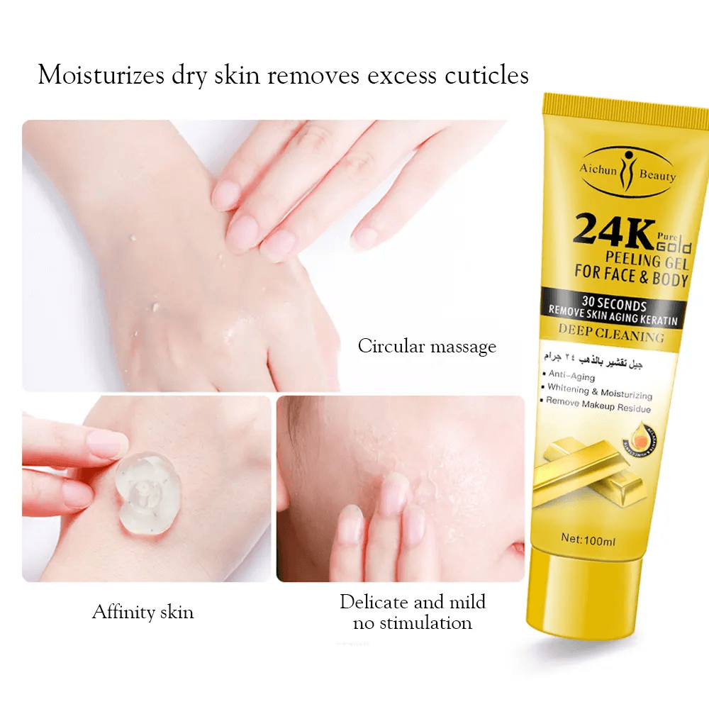 - Aichun Beauty 24k Gold Peeling Gel is a luxurious skincare product that gently exfoliates and removes dead skin cells, leaving your skin feeling soft and smooth.