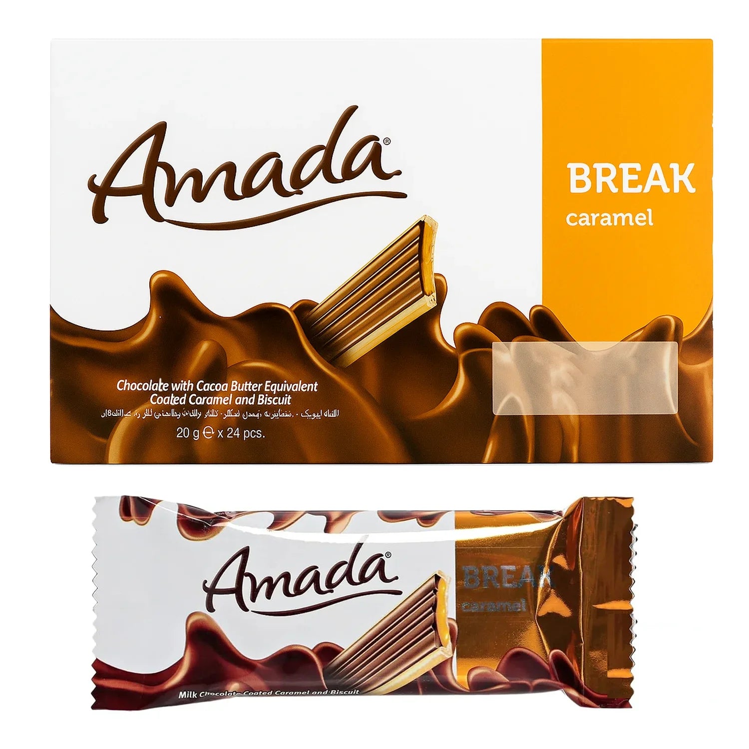 Amada is a delicious bite-sized treat that perfectly balances textures and flavors. Each bar combines a crunchy biscuit base, a smooth layer of caramel, and a rich coating of creamy milk chocolate.