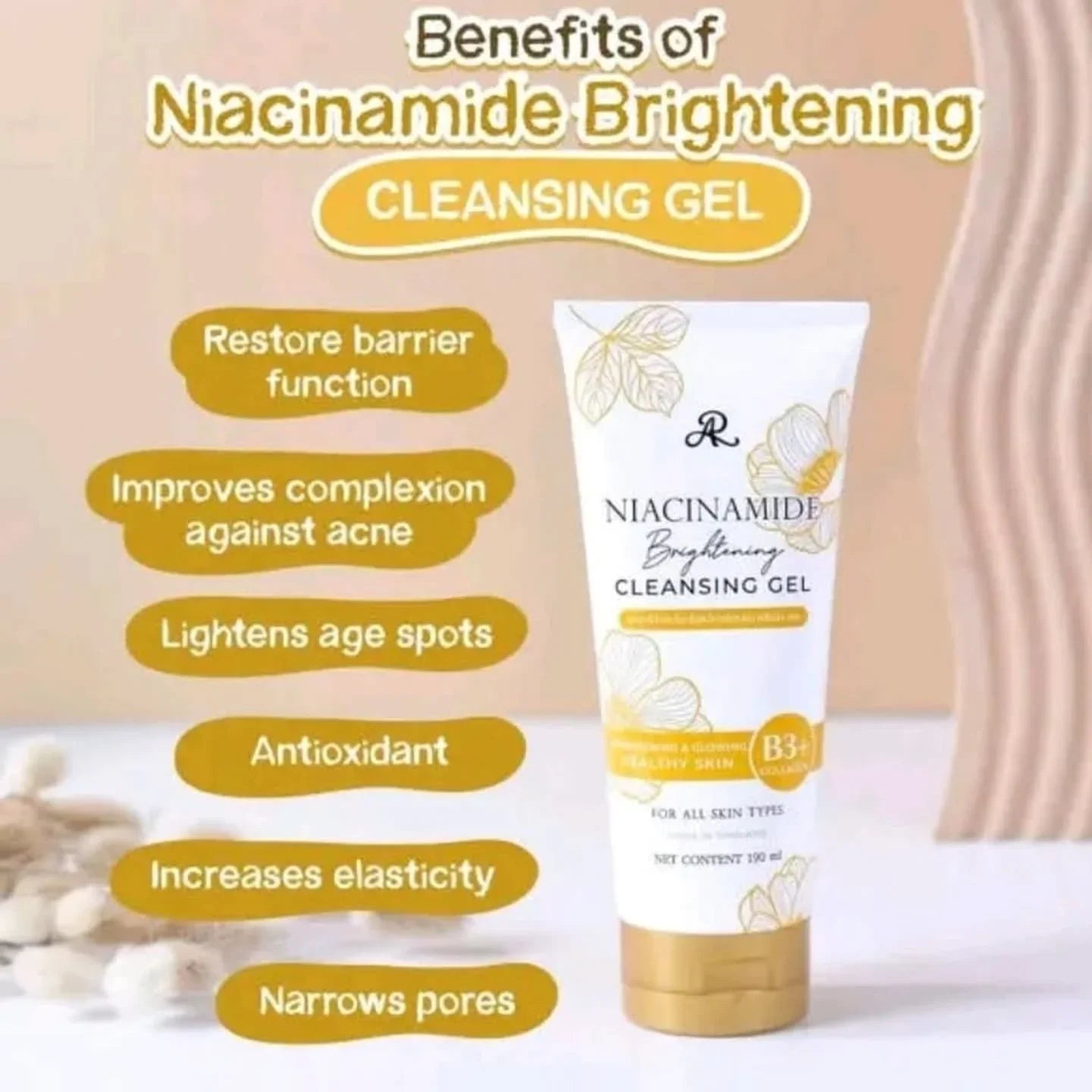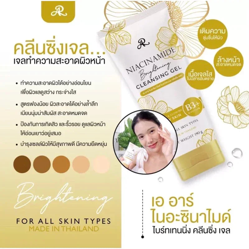 AR Niacinamide Brightening Cleansing Gel helps to cleanse the skin, while moisturizing with the value of Vitamin B3. Gives skin smooth facial and naturally looking radiant when used continuously.