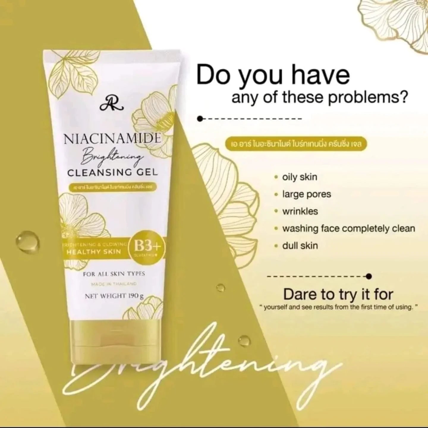 So ditch the harsh cleansers and embrace the gentle power of AR Niacinamide Brightening Cleansing Gel.