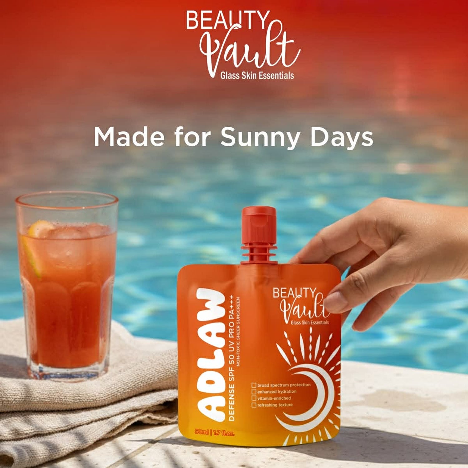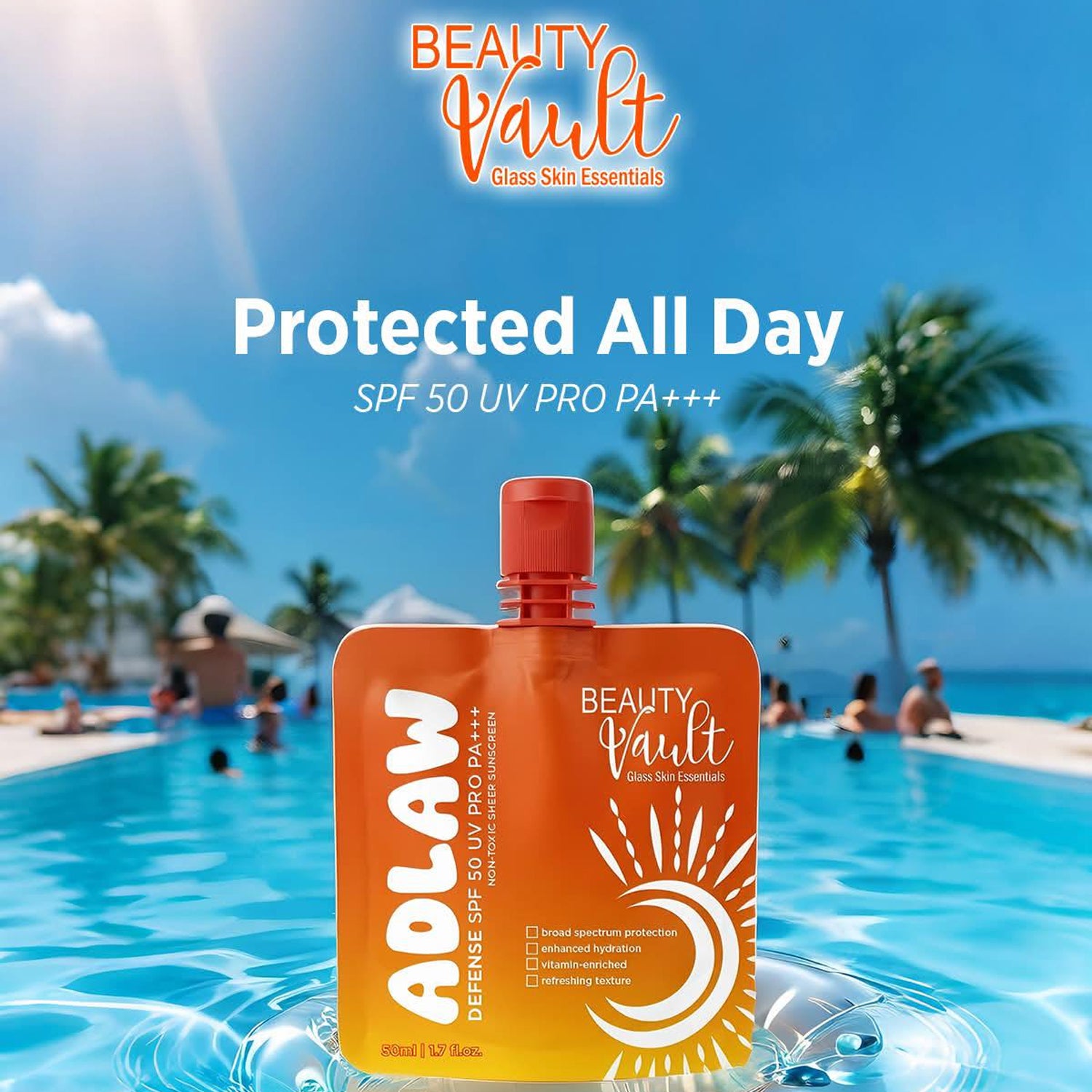 Beauty Vault ADLAW Defense SPF 50 UV Pro PA+++ – Non-Toxic Sheer Sunscreen (50ml)