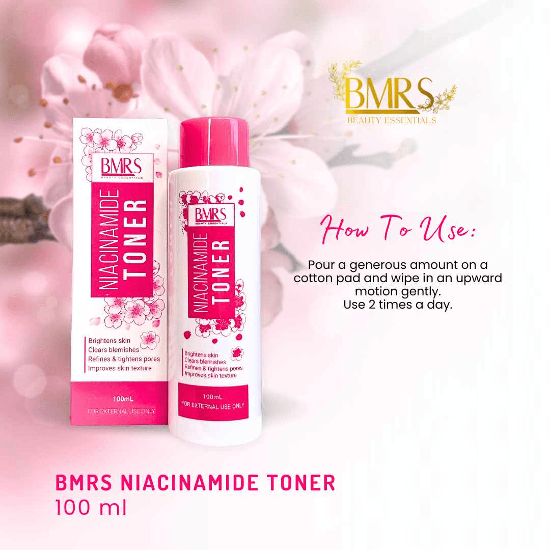 BMRS Beauty Essentials Niacinamide Toner gives the skin a glowing effect and lessens the chance of acne scarring and wrinkles. Has micropeeling effect that reveals young and effectively deep down into the pores andhelps minimizes the visibily of large pores.
