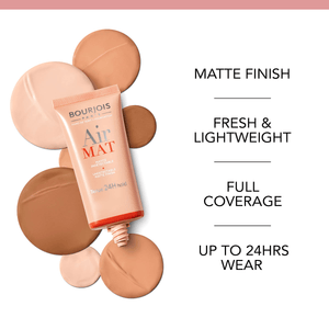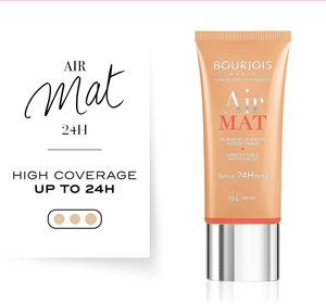 Bourjois Air Mat Foundation is a mattifying high-coverage foundation with a 24-hour hold. It has been specially developed to give skin a smooth, matte finish without shine. Its non-drying, lightweight formula lets skin breathe whilst erasing imperfections.