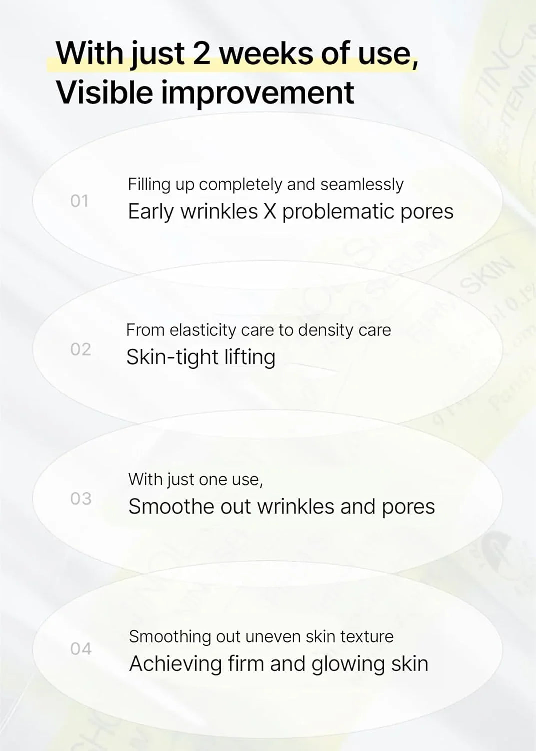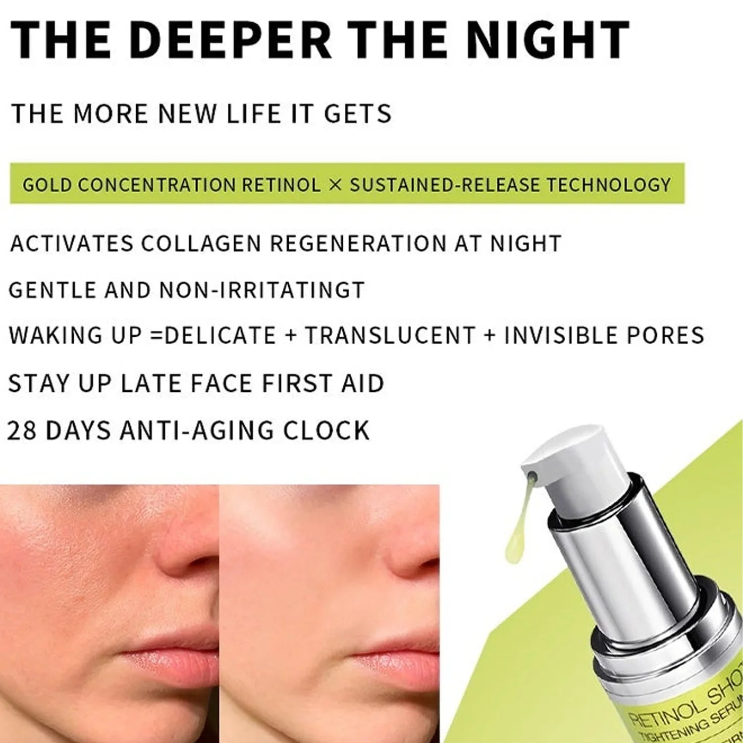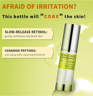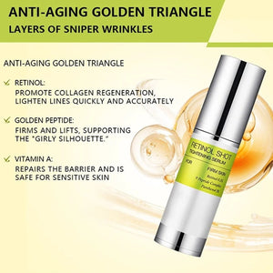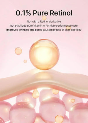 An advanced anti-aging serum designed to rejuvenate and refine your skin. Formulated with 0.1% pure retinol and a powerful 9-peptide complex, this serum targets fine lines, wrinkles, enlarged pores, and uneven skin texture while delivering deep hydration and enhancing skin elasticity. Its innovative micro-particle delivery system, 16 times thinner than pores, ensures optimal absorption of active ingredients for a radiant, youthful glow.