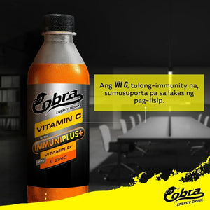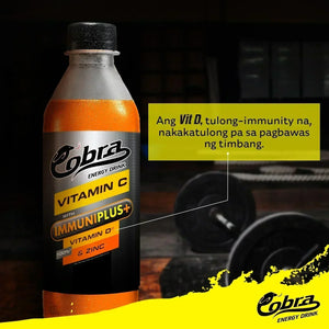 Cobra Plus VITAMIN C with IMMUNIPLUS+ Vitamin C and now has IMMUNIPLUS+, which contains 100% RENI Vitamin D and Zinc to provide extra immunity This delicious energy drink in orange flavor is sure to give energy for those on the go.