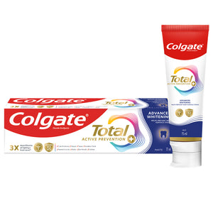 Protect your smile and maintain lasting freshness with Colgate Total Advanced Whitening Prevention Toothpaste. Featuring Total Active Prevention Plus technology, this advanced toothpaste helps fight the root causes of common oral care concerns while preventing new surface stains for a cleaner, brighter-looking smile.