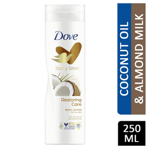 - Dove Body Love Restoring Care Coconut Oil and Almond Milk Body Lotion with 100% natural oils gives your body the care it deserves