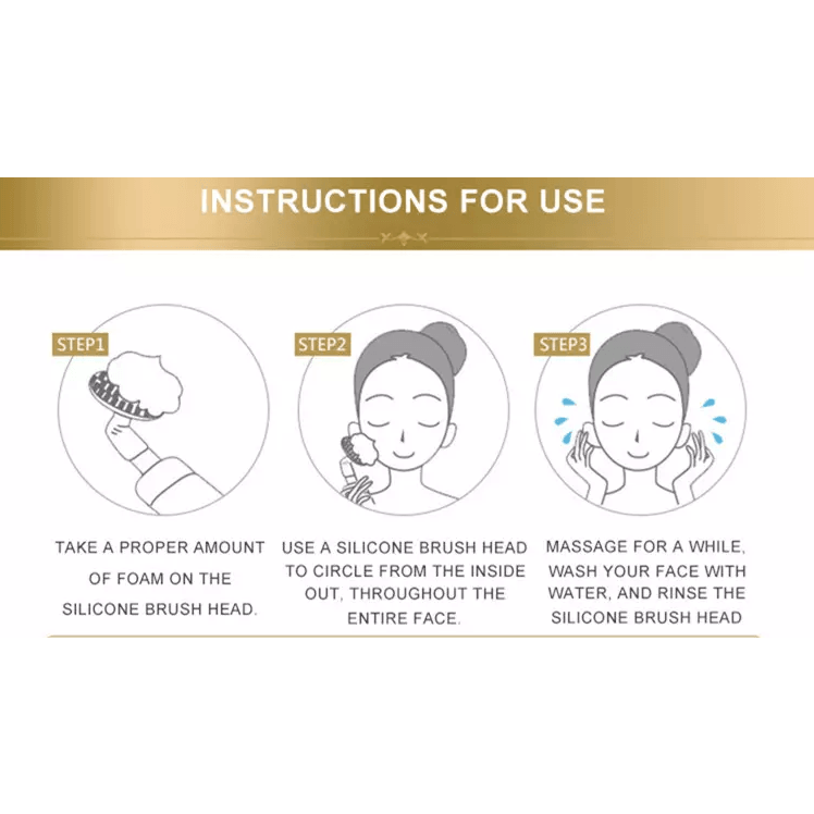How To Use : Pump a good amount of mousse and use the brush to gently massage in circular motions on damp skin. Rinse clean with water. Clean the brush head regularly.