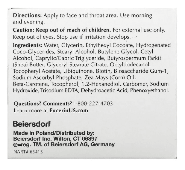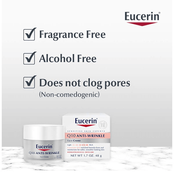 ● Eucerin Q10 Anti-Wrinkle Face Cream is non-comedogenic and non-irritating, making it suitable for daily use on sensitive skin types.