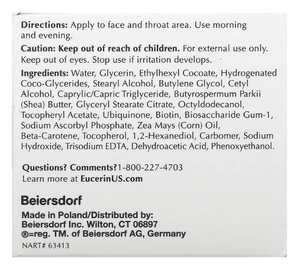 ● Infused with Vitamin E, Beta-Carotene, and Coenzyme Q10, this Eucerin Anti-Wrinkle Face Cream nourishes and protects the skin, promoting a healthy, youthful appearance.