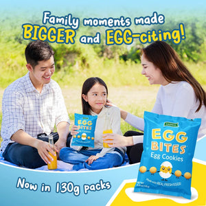 Egg Bites are made with real, fresh eggs and the finest ingredients, baked to perfection for a deliciously crunchy and satisfying treat. Packed with rich flavor and irresistible taste, one bite will surely make you want more. The 130g pack is perfect for sharing, making it an ideal snack for the whole squad to enjoy the crunchy, tasty goodness of Egg Bites cookies anytime.
