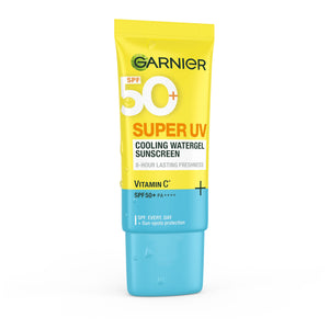Stay protected and refreshed with Garnier Super UV Cooling Watergel Sunscreen SPF 50+ PA++++ — a lightweight daily sunscreen designed for strong sun protection + instant cooling comfort, perfect for hot and humid climates.