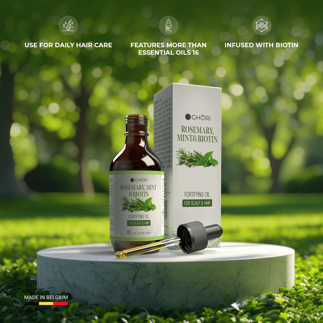 ➤ Apply a small quantity of Ghori rosemary, mint & Biotin oil to the scalp.