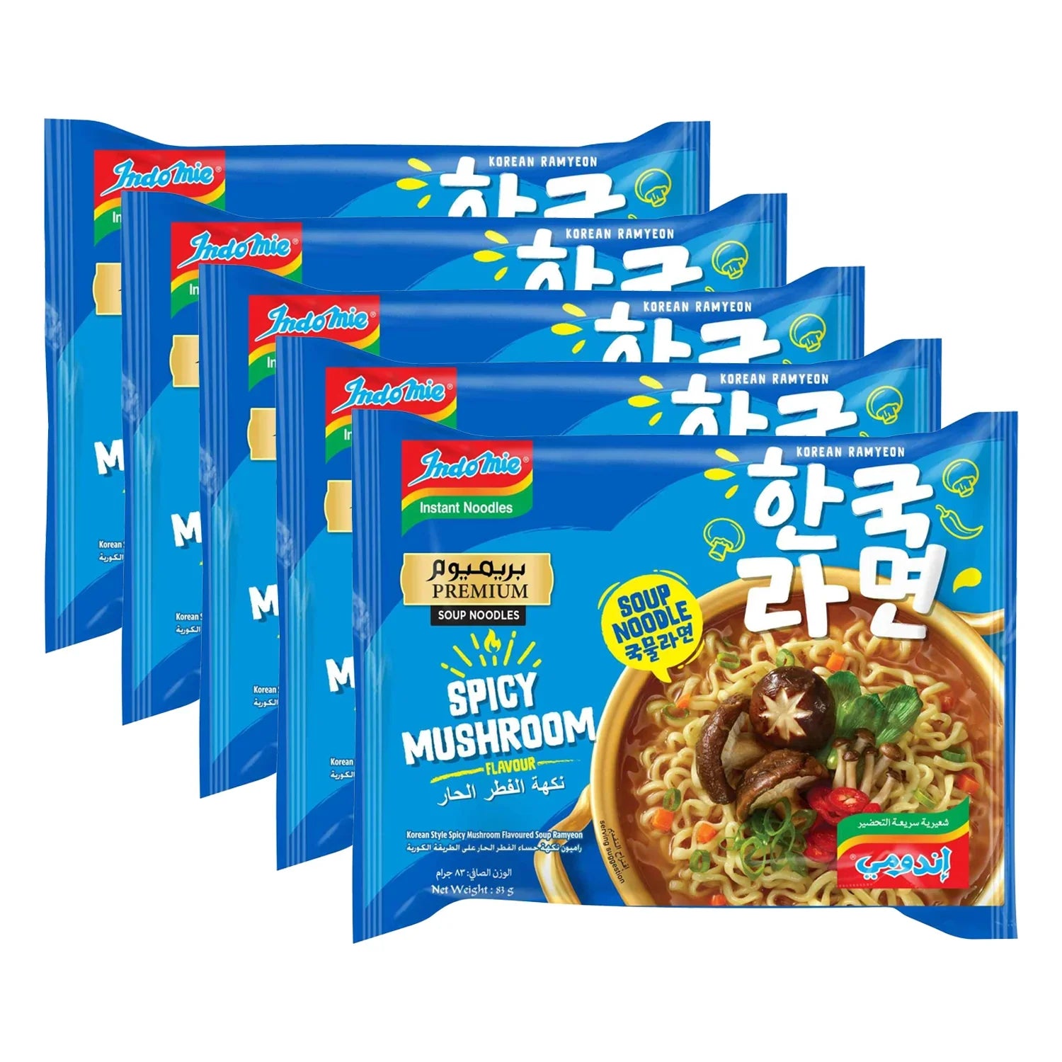 Indomie Spicy Mushroom Flavour Soup Noodles - 5Pcs × 83g
