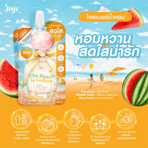 JOJI SECRET YOUNG The Beach Is Calling Perfume Body Primer is a lightweight body primer that helps instantly brighten and even out skin tone by one shade while leaving behind a sweet and tangy fragrance that feels fresh, vibrant, and irresistible.