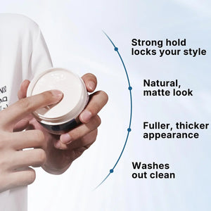 This clay gives your hair a natural matte finish with no grease, no shine, and no heavy buildup. It instantly boosts thickness and volume, making hair look fuller and more defined while still feeling light and touchable.