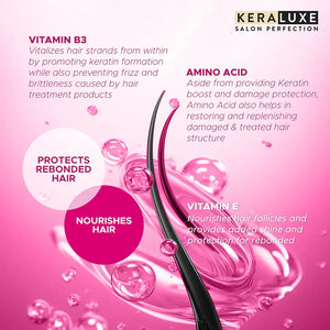 Maintain the sleek, straight perfection of your rebonded hair with Keraluxe Brazilian Botox Daily Hair Keratin Treatment—specially formulated to protect, strengthen, and extend the life of rebonded and straightened hair.