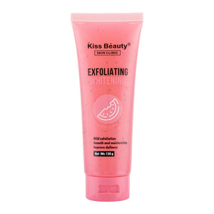 Kiss Beauty Watermelon Whitening Scrub, experience a gentle yet effective exfoliation, gently removes impurities and dead skin cells, revealing a radiant, touchably smooth complexion. Transform your skincare routine with our brightening exfoliating gel!