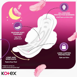 Kotex Soft Touch Sanitary Pads are designed to provide reliable protection and comfort during your period. Featuring a feather-soft top cover, these pads offer a gentle feel on the skin while helping keep you dry and comfortable throughout the day and night.