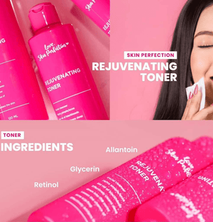 - SKIN PERFECTION REJUVENATING TONER gives the skin a lasting glow and lessens the chance of acne scarring and wrinkles.