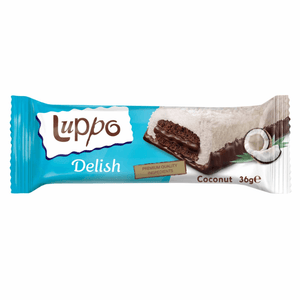 Luppo Delish Marshmallow & Coconut Cake, now available in a convenient, each weighing 36g. Indulge in the rich harmony of marshmallow and coconut, meticulously crafted to provide you with an unparalleled sensory delight.