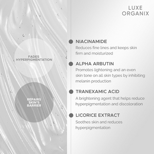 • Tranexamic Acid – Helps support a clearer and more even-looking complexion