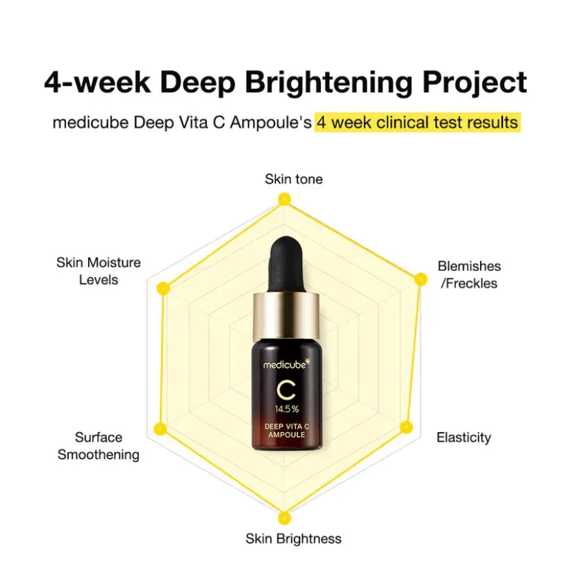 - Medicube Deep Vita C Serum is a facial serum that is a water-based serum with 14.5% vitamin C and Alpha-bisabolol to reduce hyperpigmentation, even out skin tone, and enhance skin radiance.