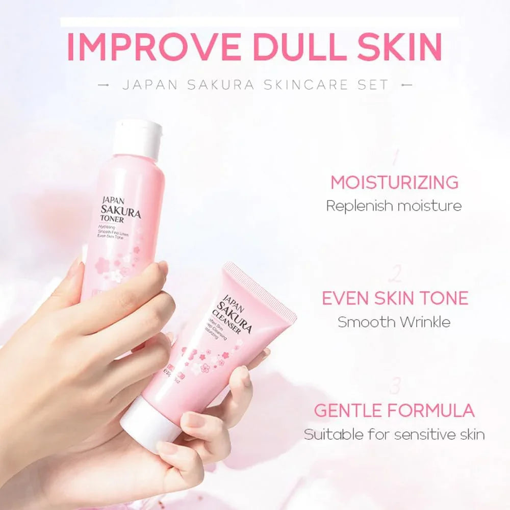 - VEGAN AND CRUELTY-FREE: Sakura skin care set is a vegan, no cruel and mild formula. After many ways of testing, it has never been tested on animals.