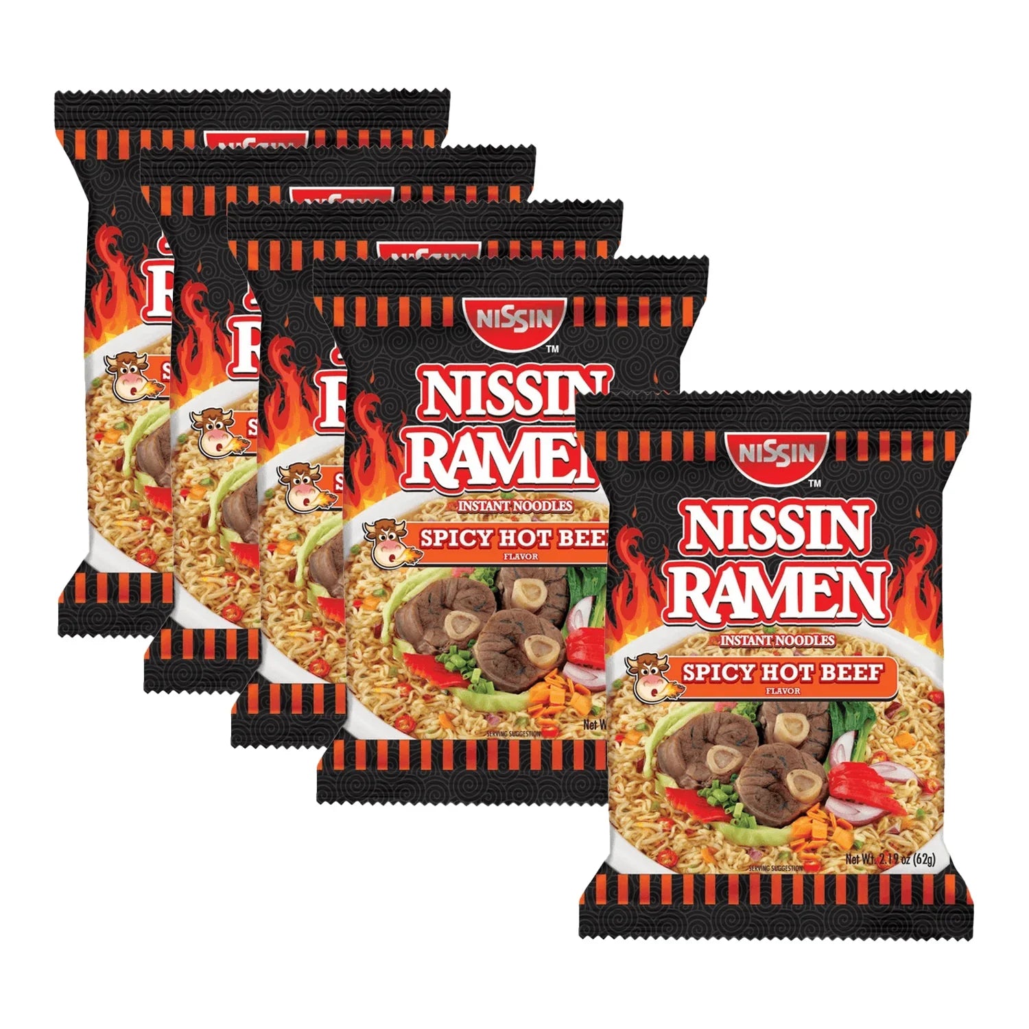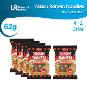 Nissin Ramen Instant Noodles Spicy Hot Beef Flavor - 62g (4+1) Offer