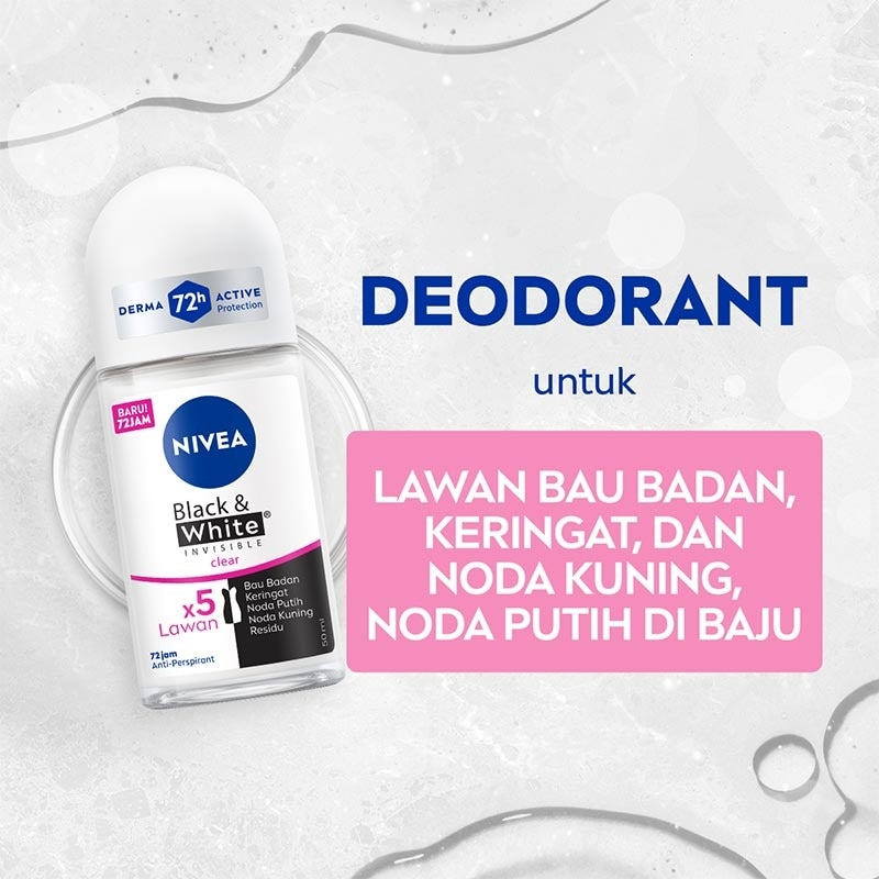 NIVEA Deodorant Roll On Black & White Invisible Original . 72-hour protection, no stains on clothes. Say No to Stains & Irritation Say Yes to Confidence
