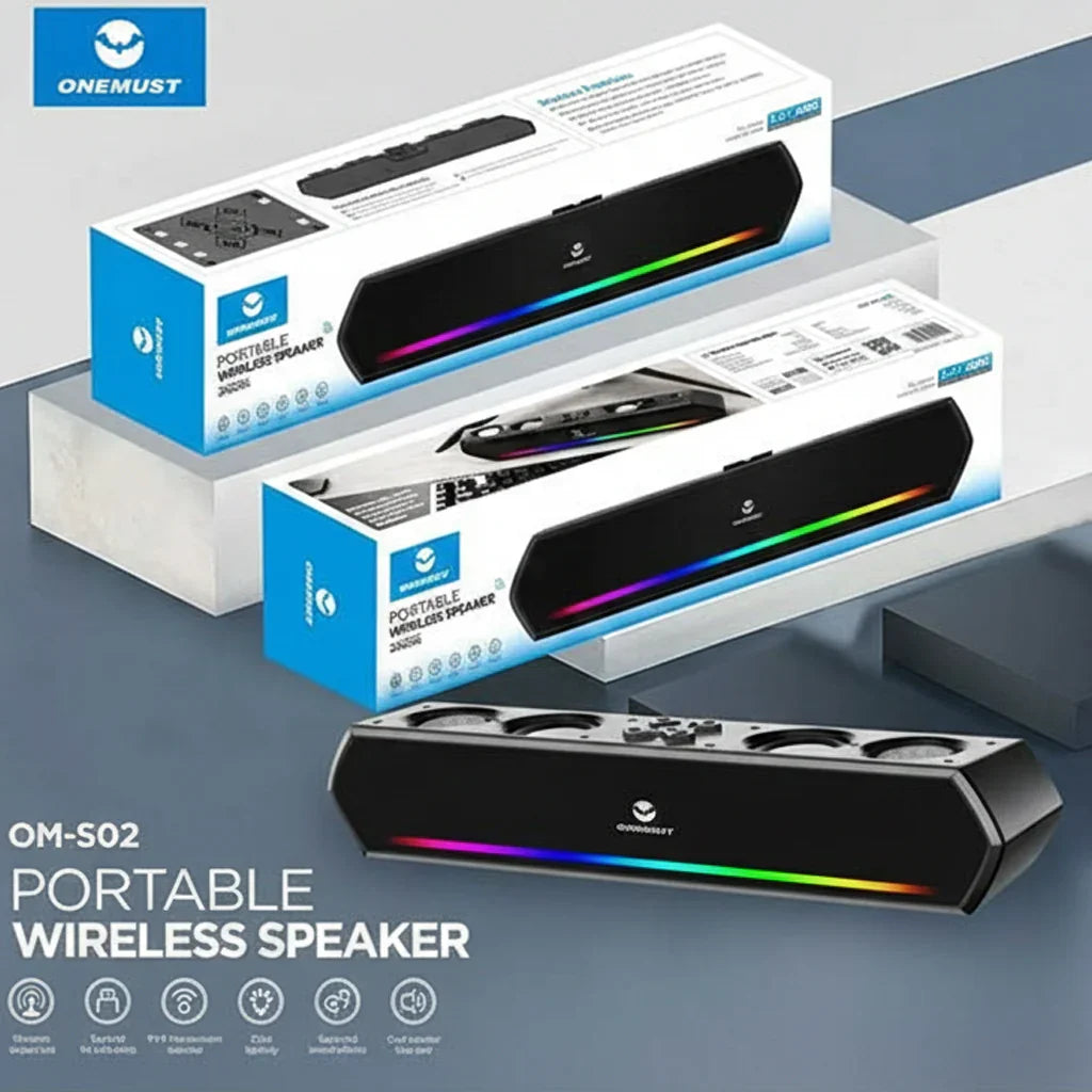 Experience powerful sound and vibrant lighting in a compact, portable design. The ONEMUST OM-S02 delivers high-quality stereo audio with multiple playback options, making it perfect for home, travel, parties, and outdoor use.