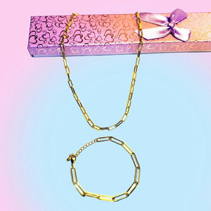 Paperclip Necklace Chain With Bracelet Jewel Set - FJ4211