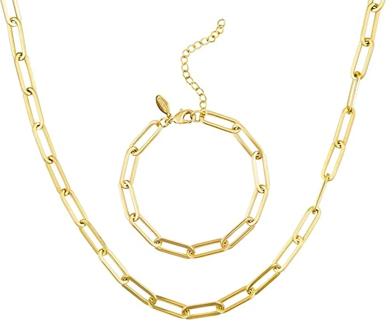- Designed in California: This Gorgeous Paperclip Chain Necklace for women comes in a set with a Paperclip Bracelet. It is made up of Chic, Elongated Links. This Paper Clip Necklace and Bracelet Set