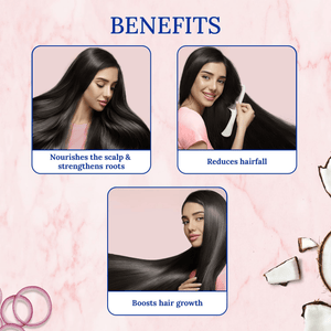 - Goodness of Coconut: Loaded with essential vitamins, triglycerides, and natural polyphenols, coconut provides vital nourishment to the hair, aiding in hair fall control and promoting hair growth. Its nourishing properties strengthen the hair shafts, preventing breakage and fostering healthy hair growth.
