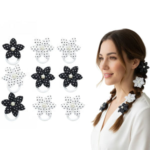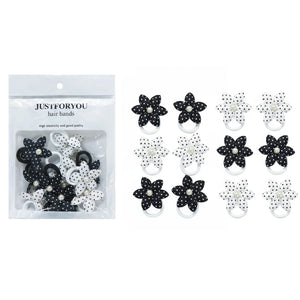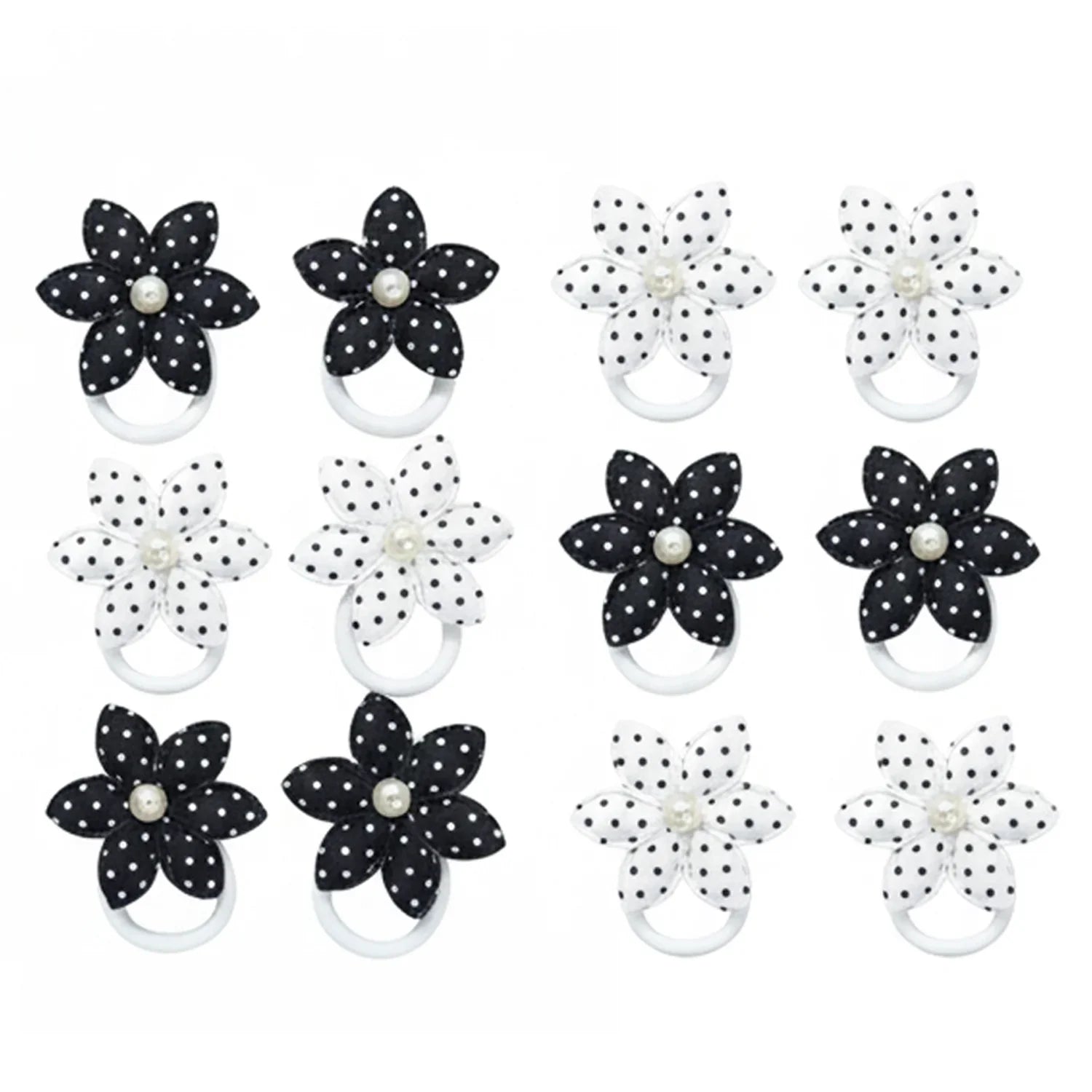 Polka Dot Flower Hair Band With Pearl - 12 Pcs