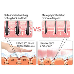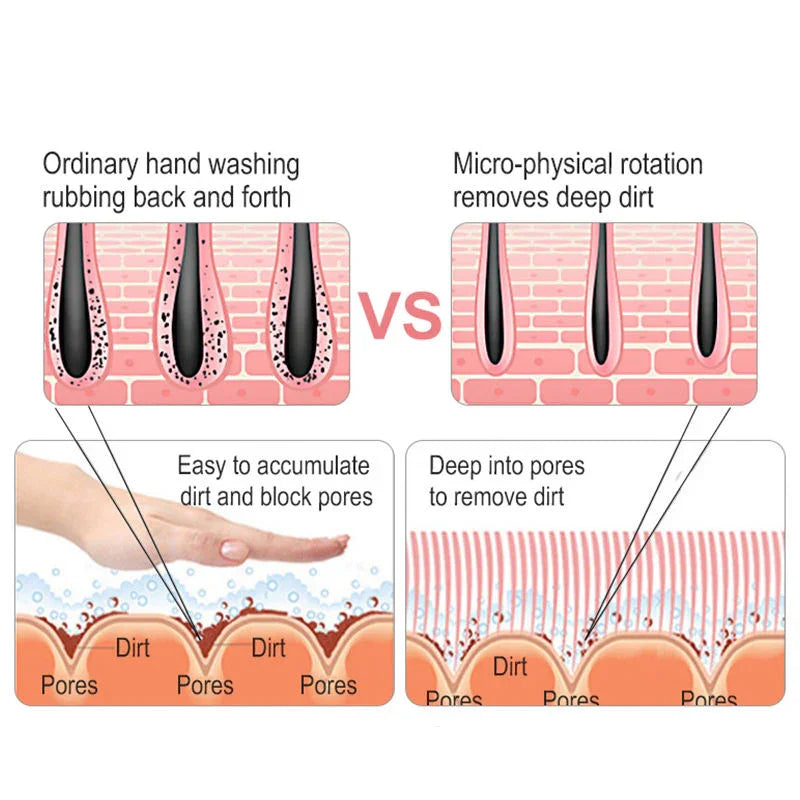 Soft brush head removes dirt, scurf, makeup residue, and impurities from the skin’s surface.