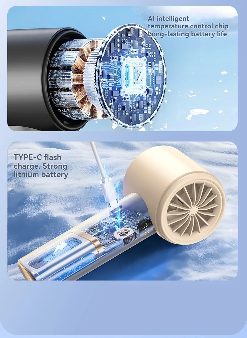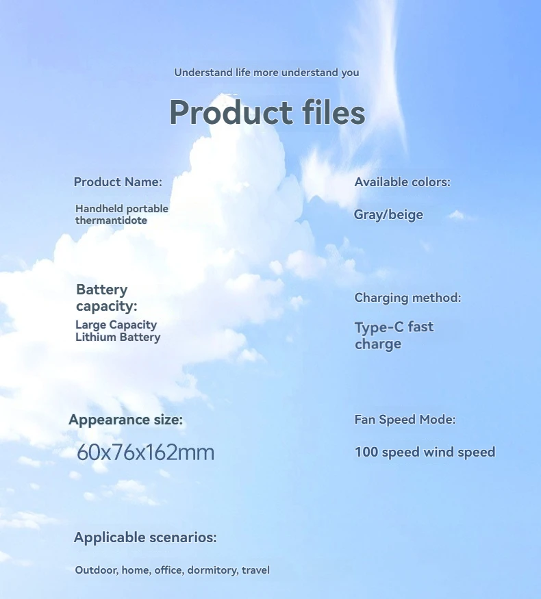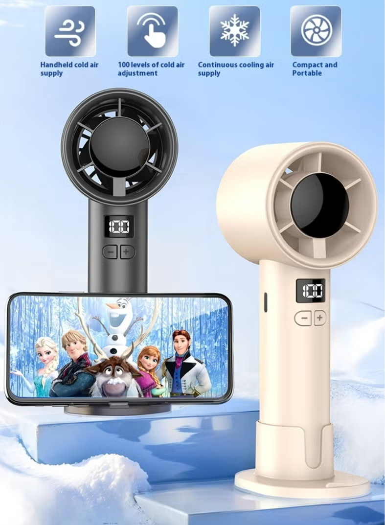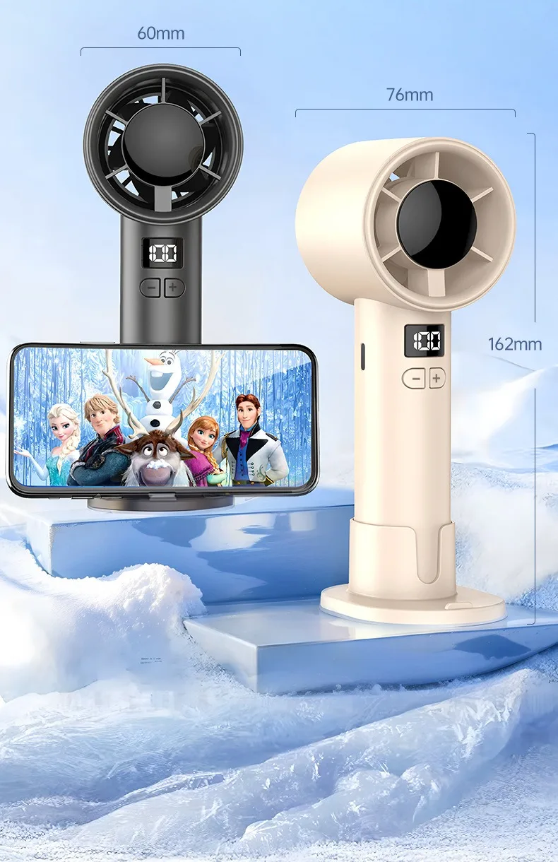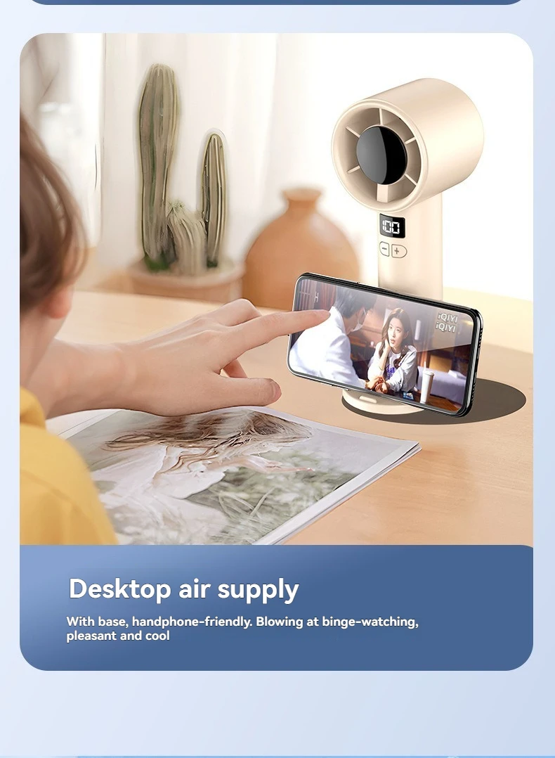 This rapid-charging handheld/desktop dual-use portable fan comes in two color options, featuring 100-step stepless speed control. It delivers higher airflow while maintaining low-noise operation, making it the ideal summer companion.