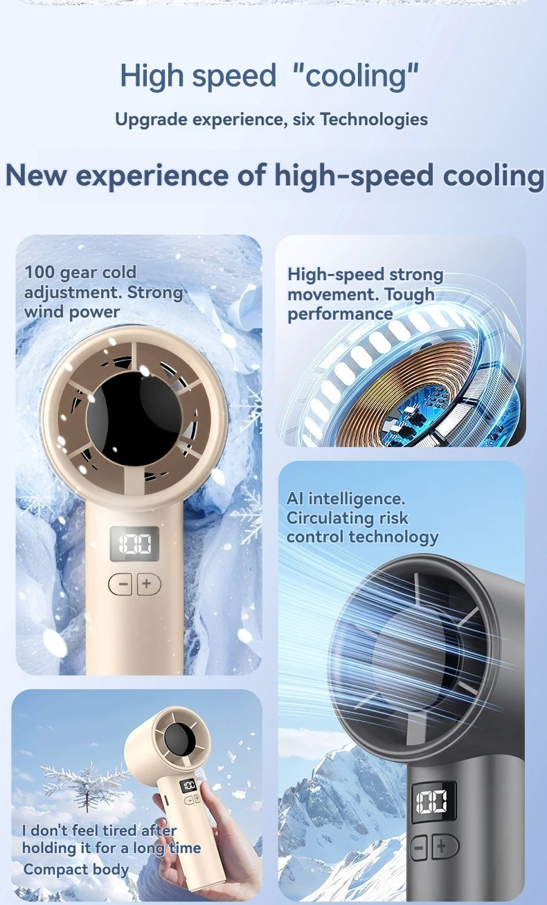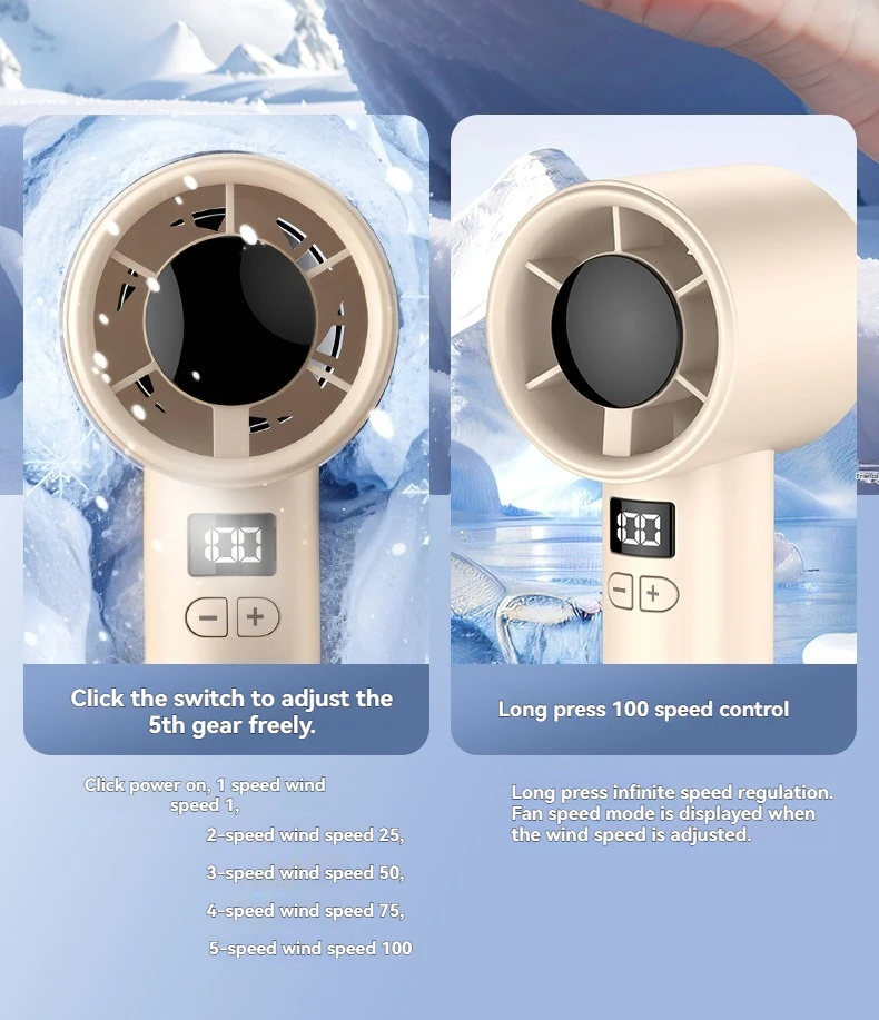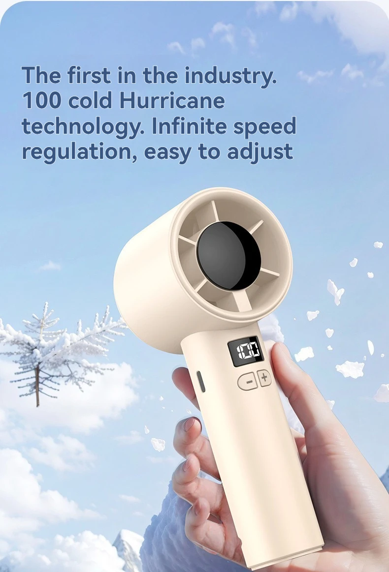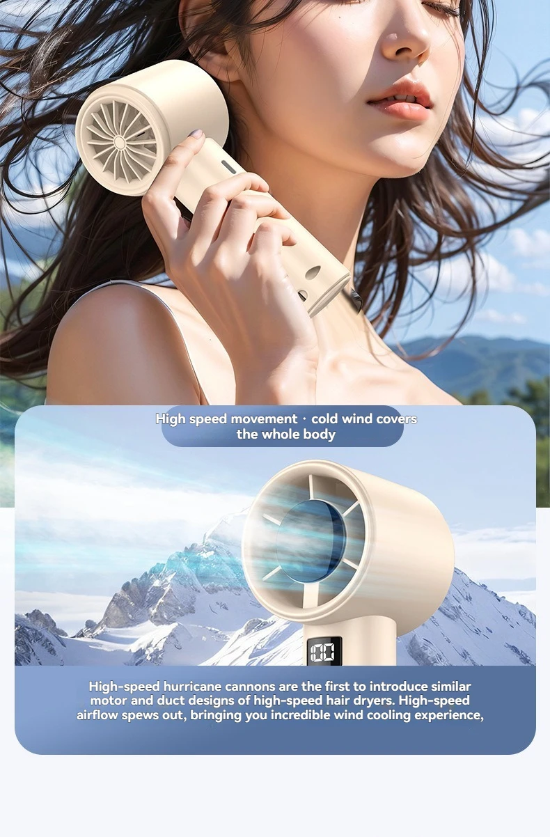 - Ultimate Cooling Experience - This handheld turbo fan adopts an advanced blade design and is equipped with a high-speed three-phase brushless motor, with a maximum wind speed of up to 10m/s; Maximum speed is 13,500 rpm, which is 3 times that of ordinary handheld fans. Perfect for relieving the heat during hot journeys
