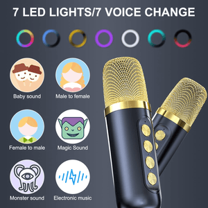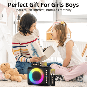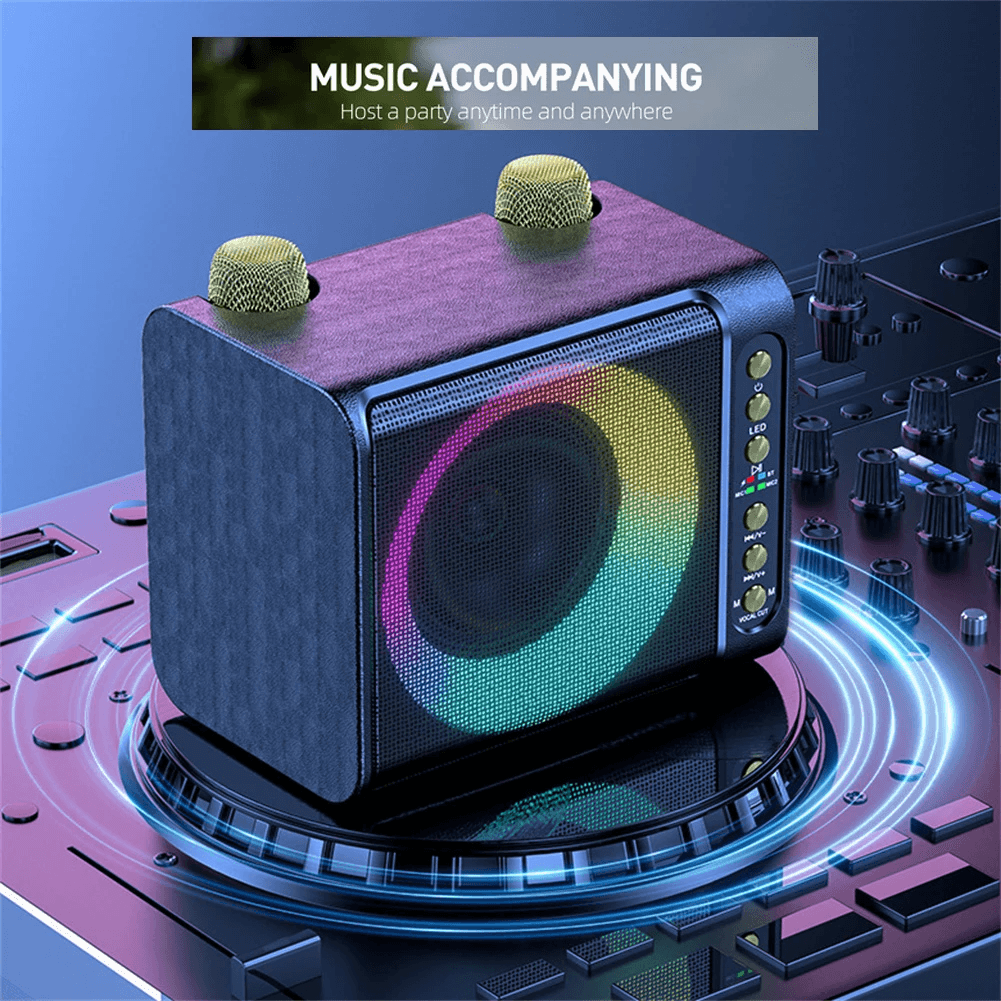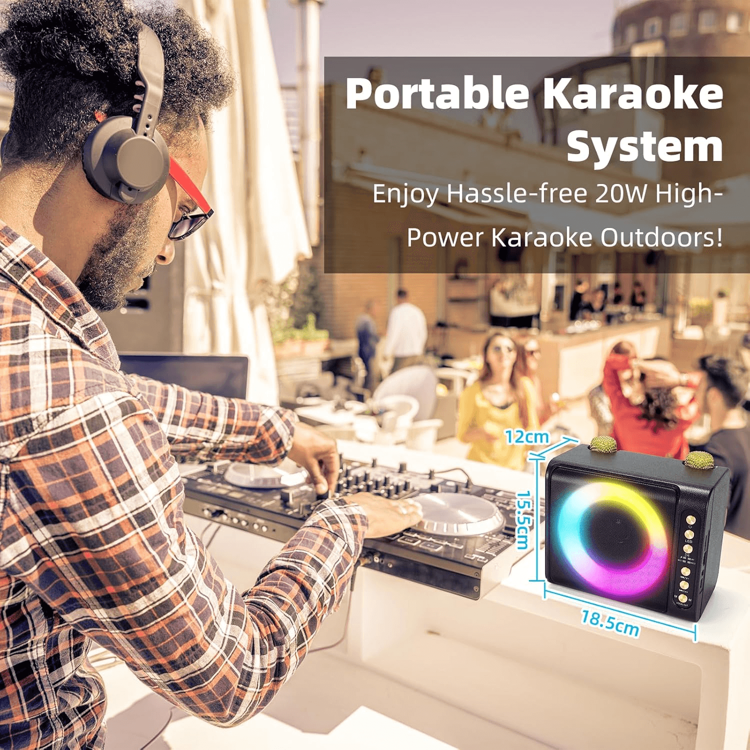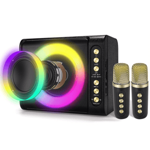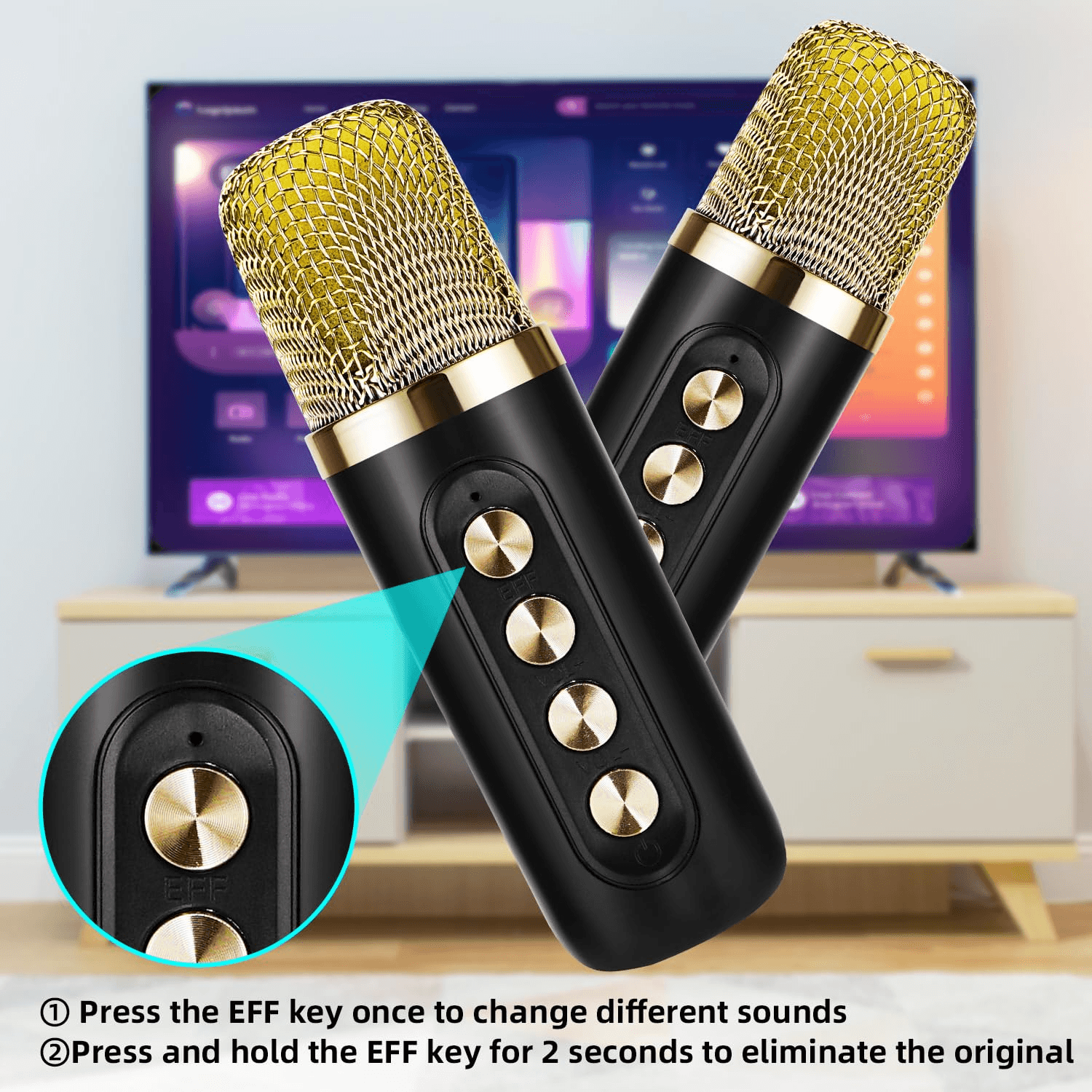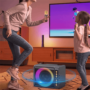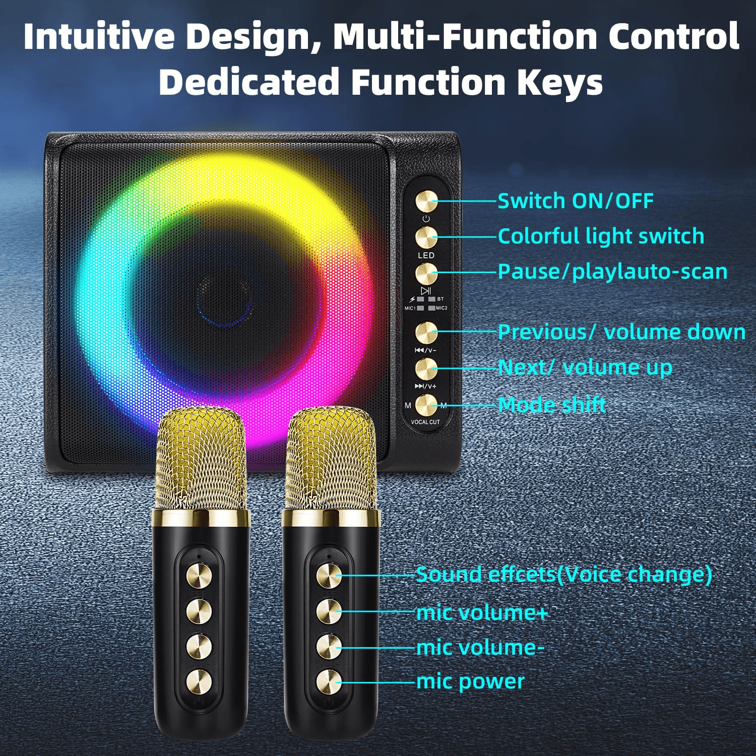 • Versatile Karaoke Machine: Two compact wireless microphones let you remotely control microphone volume, hold for 2 seconds to mute original vocals, and choose from 5 fun sound effects. The Bluetooth karaoke machine's advanced digital signal processing Improves sound quality and reduces noise, making it ideal for duets, group karaoke, classrooms, or fitness classes.