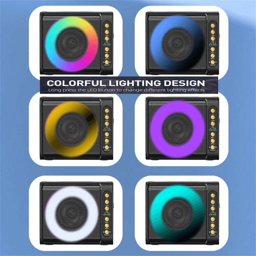 • Dynamic LED Light Show: Karaoke machine with 2 Bluetooth wireless microphones features vibrant LED lights with 7 dazzling light modes. Independent button controls the light, one-touch convenience. Our LED light show adds a lively atmosphere to your party and makes dancing with your friends fun. This makes it an ideal sound reinforcement system for any event.