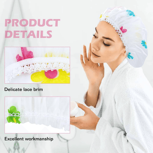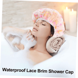 Reusable Waterproof Lace Brim Shower Cap - 1 Pcs