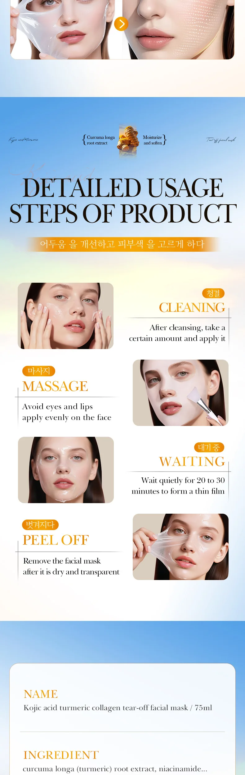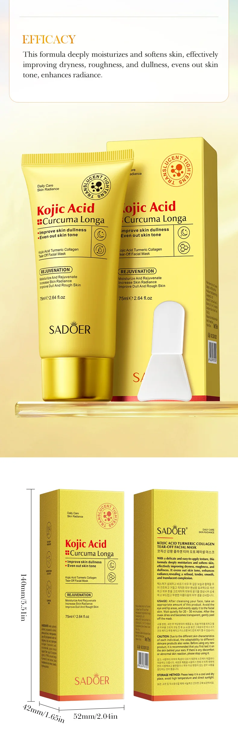 Sadoer Kojic Acid Turmeric Collagen Peel-Off Facial Mask - 75ml