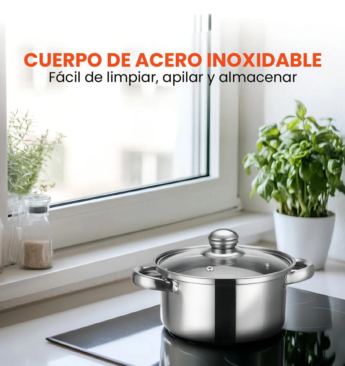 Stainless Steel Cooking Pot with Lid – Induction Compatible & Easy Storage