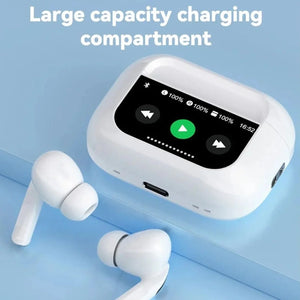 Introducing the Telzeal DS86 LCD Touch Screen Wireless Earbuds, designed to deliver a smart, stylish, and high-performance audio experience. Featuring an innovative LCD touch screen on the charging case, these earbuds allow you to control music playback, adjust volume, manage calls, and view status information with a simple tap—no phone needed.