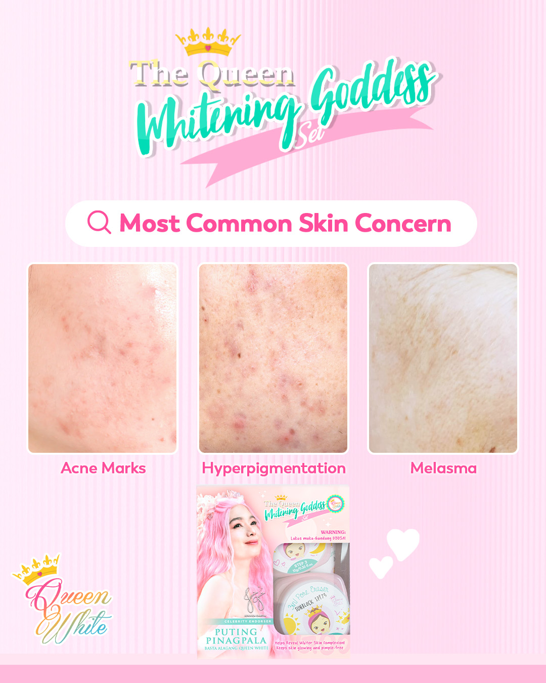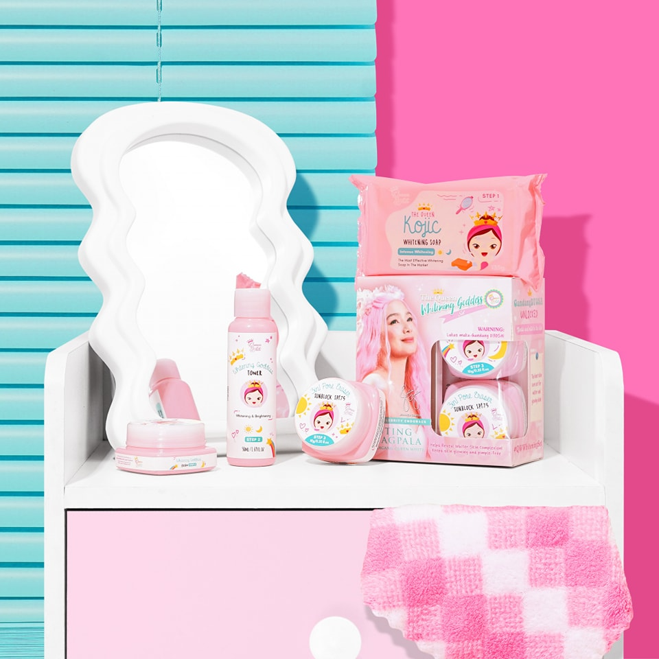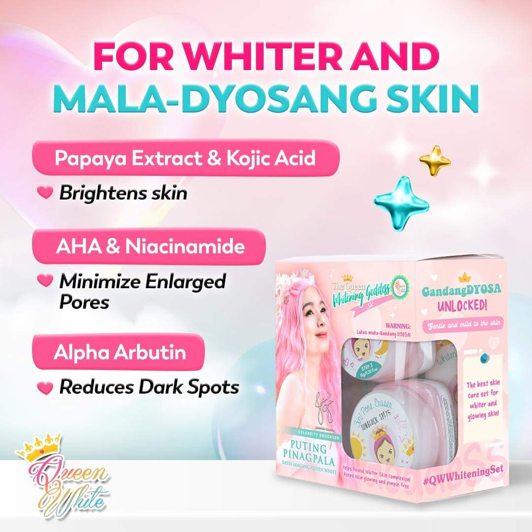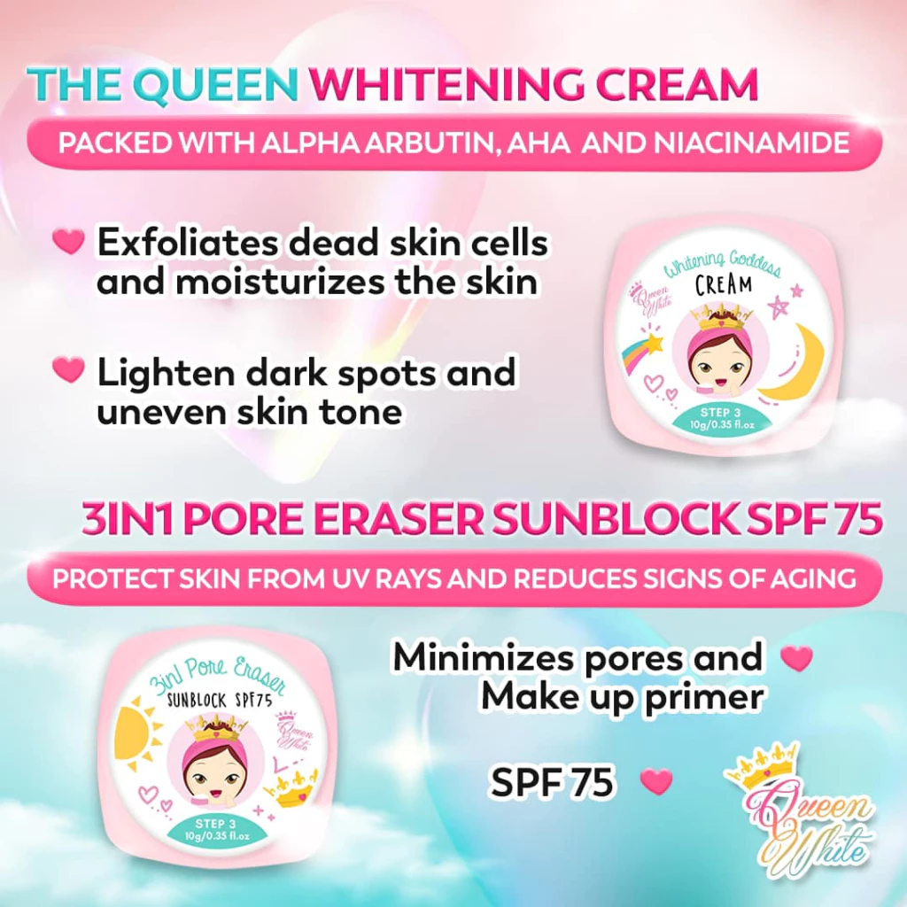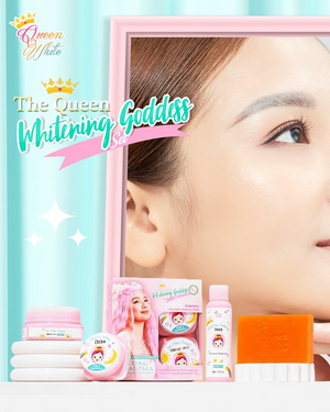 Reveal brighter, smoother, goddess-level skin every day with Queen White Whitening Goddess Set