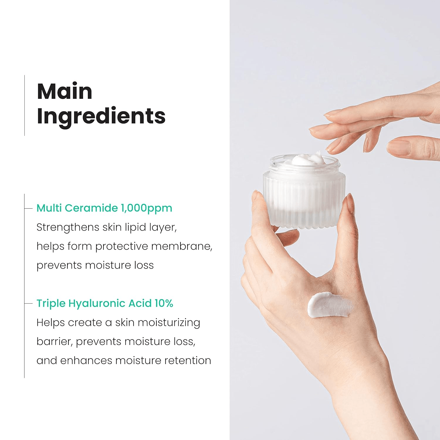 Purified Water, Glycerin, Coco-Caprylate/Caprate, Polyglyceryl-3 Methyl Glucose Distearate, Squalane, Caprylic/Capric Triglyceride, Pentylene Glycol, Propanediol, Polyglyceryl-3 Distea Rate, Cyclohexasiloxane, 1,2-Hexanediol, Butylene Glycol, Chlorella Extract, Shea Butter, Hyaluronic Acid, Hydrolyzed Hyaluronic Acid, Sodium Hyaluronate, Cetearyloli Bate, Diphenyldimethicone, Diphenylsiloxyphenyltrimethicone, Sorbitan Olivate, Hydrogenated Coco-Glyceride, Glyceryl Stearate, Polymethylsilsesquioxane, Glucose, Hydroxyacetophenone, Acrylate /C10-30 Alkyl Acrylate Crosspolymer, Fructooligosaccharide, Fructose, Sodium Polyacrylate Starch, Tromethamine, Glyceryl Stearate Citrate, Panthenol, Hydroxyethyl Acrylate / Sodium Acrylo Yldimethyltaurate Copolymer, Hydrogenated Lecithin, Sodium Phytate, Stearic Acid, Ethylhexylglycerin, Beta-Glucan, Ceramide Np, Ceramide Ns, Cholesterol, Phytosphingosine, Ceramide Ap, Ceramide Ace, Ceramide Io , Cetearyl Alcohol, Xanthan Gum, Fragrance, Linalool, Hexylcinnamal, Benzyl Benzoate, Eugenol, Hydroxycitronellal