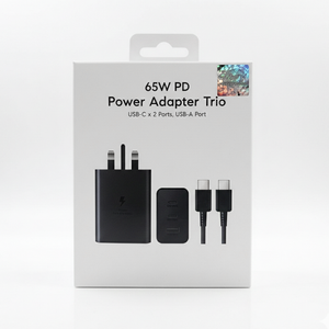 The 65W PD Power Adapter Trio is a high-performance fast charger designed for modern devices. Featuring 2 USB-C ports and 1 USB-A port, it allows you to charge multiple devices efficiently while maintaining safe and stable power delivery. Ideal for Android smartphones, tablets, and other USB-powered devices.