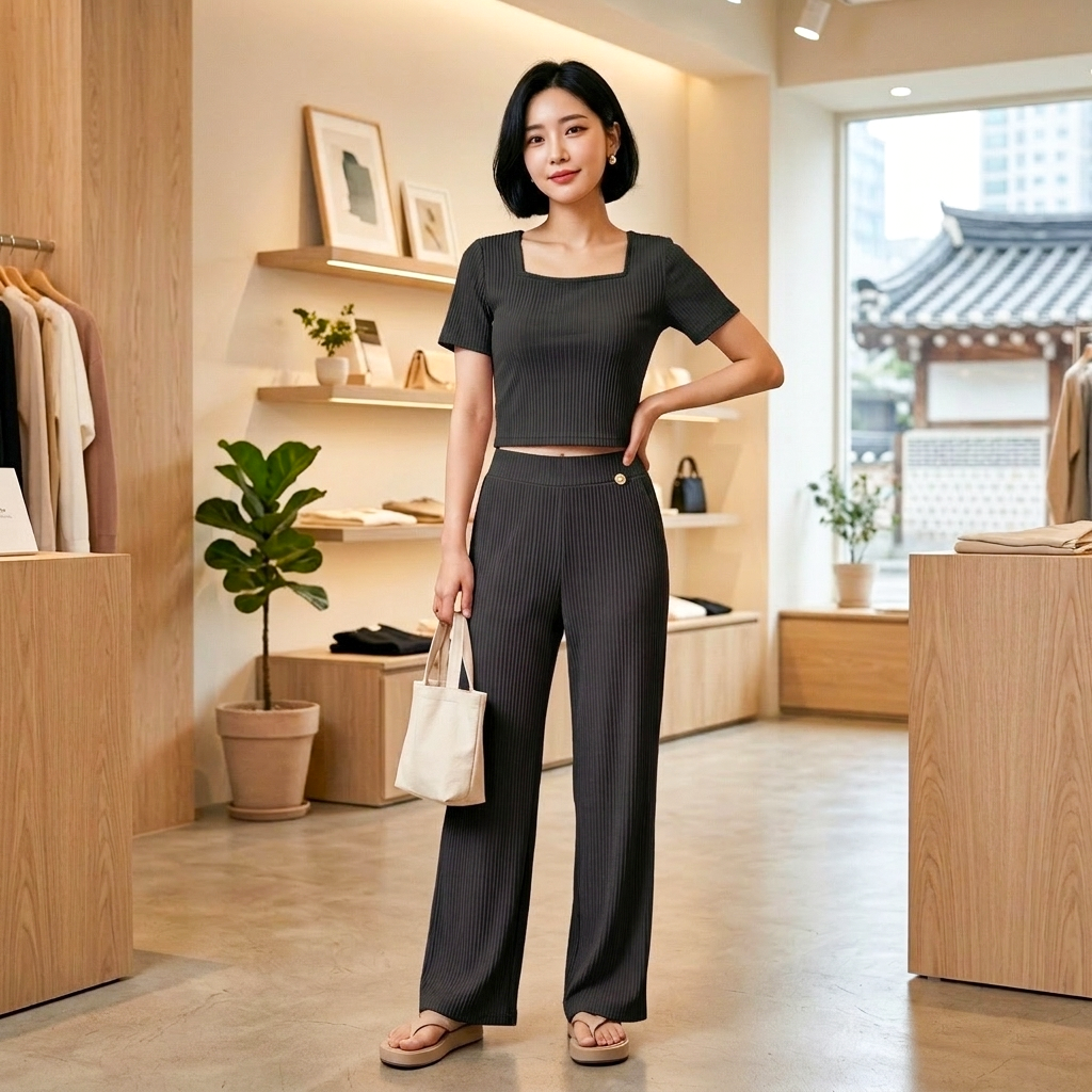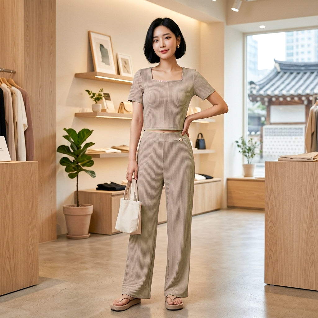 Women's Korean Style Classic Design Top & Pant M-719