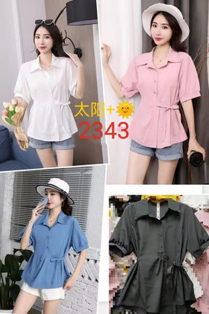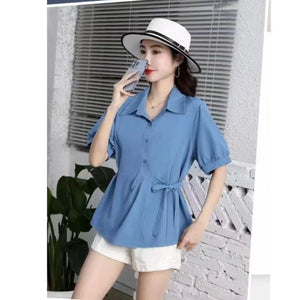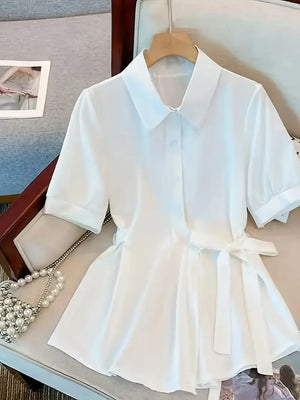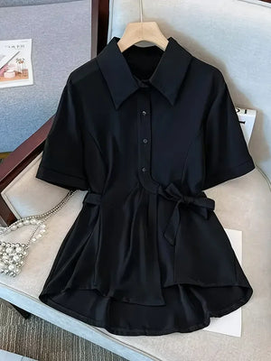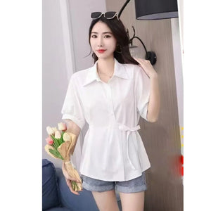 Women's Short Sleeve Side Bow Tie Fashion Tops - 016