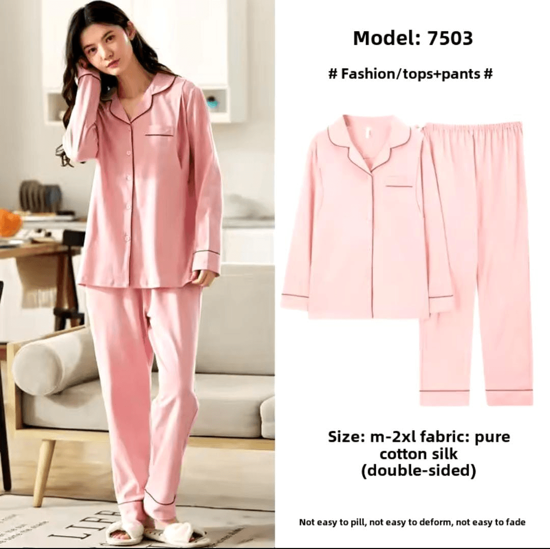 Women's Soft Cotton Long Sleeve Pajamas Set - 7503